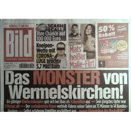 Deutsche Bild Zeitung vom Dienstag den 31 Mai 2022