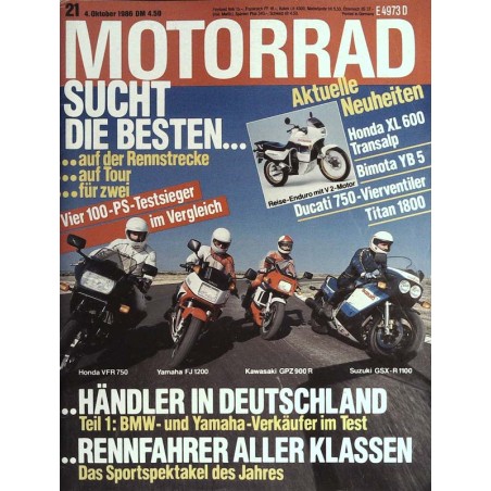 PLUS: Aktuelle Neuheiten: Honda XL 600 Transalp, Bimota YB 5, Ducati 750 Vierventiler, Titan 1800 - Händler in Deutschland: Teil 1 BMW und Yahama-Verkäufer im Test - Rennfahrer aller Klassen: Das Sportspektakel des Jahres