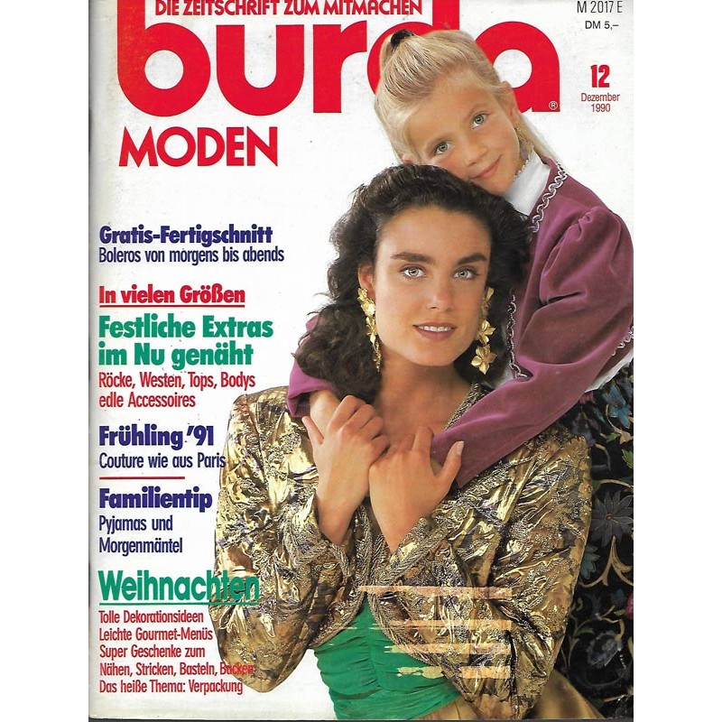 PLUS: Gratis Fertigschnitt: Boleros von morgens bis abends - Frühling 1991: Couture wie aus Paris - Familientip: Pyjamas und Morgenmäntel - Weihnachten: Tolle Dekorationsideen; Leichte Gourmet Menüs; Super Geschenke zum Nähen, Stricken, Basteln, Backen; Das heiße Thema Verpackung