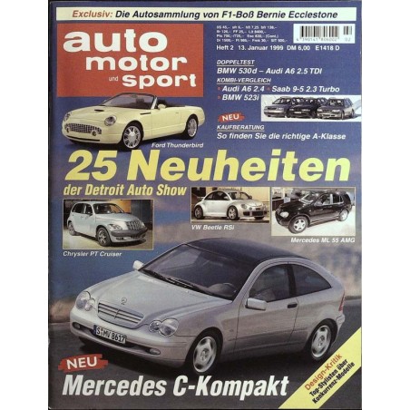 PLUS: 25 Neuheiten der Detroit Auto Show - Exclusiv: Die Autosammlung von F1-Boß Bernie Ecclestone - Doppeltest: BMW 530d bis Audi A6 2.5 TDI - Kombi Vergleich: Audi A6 2.4, Saab 9-5 2.3 Turbo und BMW 523i - Kaufberatung: So finden Sie die richtige A-Klasse