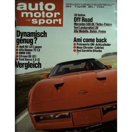 PLUS: 20 Seiten Off Road: Mercedes 500 GE / Turbo Pajero, Test Lamborghini LM, alle Modelle, Daten und Preise - Dynamisch genug? Audi 80 1.8 E gegen Alfa Romeo 75 1.8, BMW 318i, Citroen BX GTi, Ford Sierra 2.0 iS Vergleich