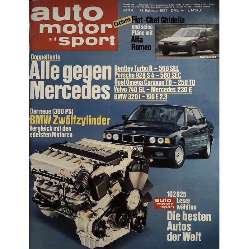 PLUS: Der neue (300 PS) BMW Zwölfzylinder: Vergleich mit den edelsten Motoren - Die besten Autos der Welt: Leser wählten - Fiat Chef Ghidella und seine Pläne mit Alfa Romeo