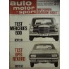 INHALT Test Mercedes-Benz 600 Dauertestkalender London Motor Show Fiat jetzt mit 1 — 2 — 4 Nockenwellen Test Opel Rekord 1967 Wie man Automobile fotografiert Wir fuhren: Brabham-Kadett Grand Prix von Mexiko Der Maserati war zu stark Caravan-Salon in Essen Nach Klassen zur Kasse Ferienvilla von Ford