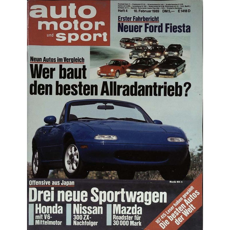 TEST & TECHNIK Fahrbericht Ford Fiesta Dem Ford-Schritt auf der Spur Doppeltest Alpina BMW B12 gegen Porsche 928 S4 Kampf der Giganten Allrad-Autos im Vergleich Die Schnee-Kanonen Test Opel Omega 2.4i CD Unter die Haube gekommen Neues Sechsganggetriebe Der sechste Sinn Katalysator-Haltbarkeit Nur heiße Luft? Test BMW 320is Abzugvor Steuern Test Buick Reatta Ein Chip wird kommen MAGAZIN Leserwahl „Die besten Autos der Welt" Nasen vom Magazin-Journal Fiesta-Marketing Wie er euch gefällt Tempo-Kontrolle Potz Blitz