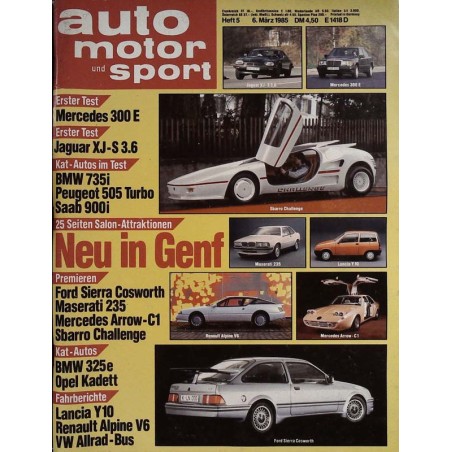 MAGAZIN Wie Motoren-Schnittmodelle hergestellt werden Der Aufschneider Ein Test des NASA Space Shuttle Test und Technik Die Erfahrungen des ADAC mit seinen Straßenwachtautos Bis zur bitteren Neige Marktbericht Januar 1985 Tief über Bayern Die Autohersteller in Amerika machen extreme Gewinne Der Aufschwung Magazin-Journal 50 Jahre Großglockner Zur schönen Aussicht Unversicherte Autos im Straßenverkehr Allgemeine Verunsicherung Die glücklose Wiederbelebung der Marke Talbot Einst und jetzt Mit Fernreisen belohnen Autofirmen ihre Händler Ohne Preis kein Fleiß Die Auferstehung des Maserati Boomerang Zweiter Frühling Neues vom mobilen Freizeitmarkt Frühlingserwachen Kuriose Erfindungen rund ums Auto Patentlösungen Der Mann, der die Marke Mercedes erfand Monsieur Mercedes Tips, Trips, Trends Fahrtenbuch Männersachen Ein Buch über Jaguar und zwei weitere Lesetips Aristo-Cats