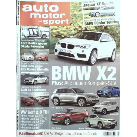 PLUS: Edler Kombi: Jaguar XF Sportbrake - Fahrbericht und erster Vergleich mit BMW Fünfer Touring - Revolutionäres Türkonzept: Ford B-Max gegen Skoda Roomster - Vergleich sportliche Südländer: Seat Leon gegen Alfa Romeo Giulietta - Exklusiver Fahrbericht: Audi A3 Sportback - Test, gewinnt er wieder? Ford Focus 2.0 TDCi, Honda Civic 2.2 i-DTEC, Hyundai i30 1.6 CRDi, Opel Astra 2.0 CDTi, Peugeot 308 HDi - Kaufberatung: Die Aufsteiger des Jahres Check