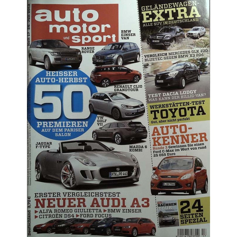 PLUS: Erster Vergleichstest: Neuer Audi A3, Alfa Romeo Giulietta, BMW Einser, Citroen DS4, Ford Fuchs - Geländewagen Extra: Alle SUV in Deutschland, Mercedes GLK 220 Bluetec gegen BMW X3 20d - Test Dacia Lodgy: Was kann der Billig-Van? - Werkstätten test: Toyota, gut, aber nicht perfekt