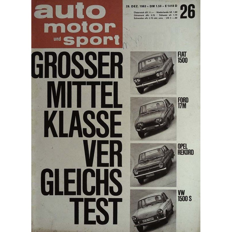 Inhalt Mittelklasse-Vergleidistest Fiat 1500, Ford 17 M, Opel Rekord, VW 1500 S Blick in den Rückspiegel: Wurden 10 Jahre vergeudet? Menschen hinter Namen: Andreas Glas Heben wir genug geschaltet? Bericht aus USA: Offene Karten Was bringt die Transistorzündung? Marktbericht: Zulassungszahlen Oktober 1963 Die Stunde des Fahrens Der menschliche Versager 365 Tage Glattetsgefahr USA-Zubehör, Das Gerät ersetzt den Hausfreund Zum Abschluß der Grand Prix-Saison: Eine Rangliste