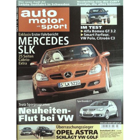 PLUS: Im Test: Alfa Romeo GT 3.2, Smart Forfour, VW Polo, Citroen C3 - Der neue Audi A6: Letzte Testfahrt in Schweden - Neuheiten von der CeBIT: Hyndys, die alles können - Trotz Sparprogramm: Neuheiten-Flut bei VW - Überraschungssieger: Opel Astra schlägt VW Golf