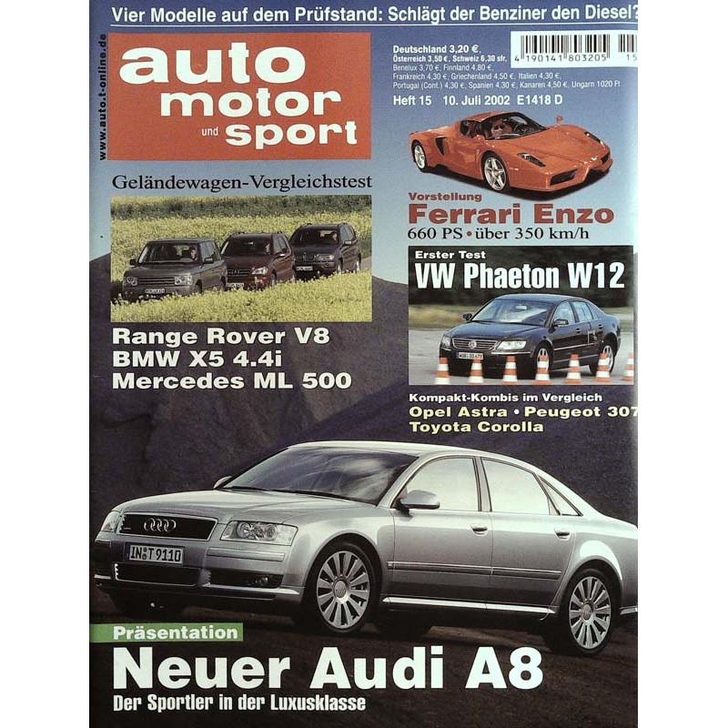 PLUS: Vier Modelle auf dem Prüfstand: Schlägt der Benziner den Diesel? - Vorstellung: Ferrari Enzo, 660 PS, über 350 km/h - Erster Test: VW Phaeton W12 - Kompakt Kombis im VErgleich: Opel Astra, Peugeot 307, Toyota Corolla - Geländewagen Vergleichstest: Range Rover V8, BMW X5 4.4i, Mercedes ML 500