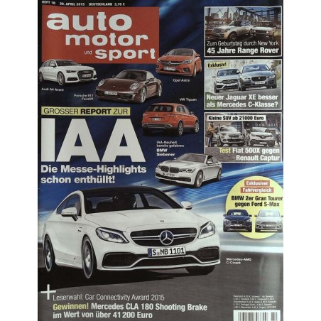 PLUS: zum Geburtstag durch New York: 45 Jahre Range Rover - Neuer Jaguar XE besser als Mercedes C-Klasse? - Kleine SUV ab 21000 Euro: Test Fiat 500X gegen Renault Captur - Exklusivere Fahrvergleich: BMW 2er Gran Tourer gegen Ford S-Max - Leserwahl: Car Connectivity Award 2015
