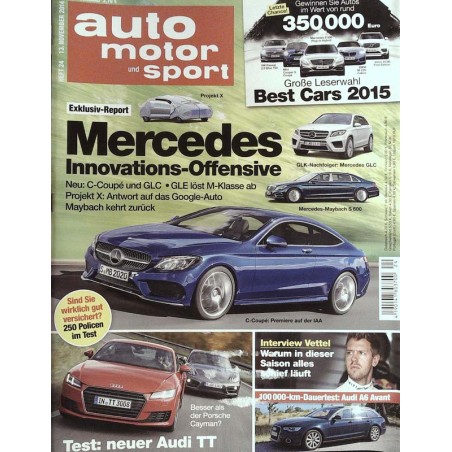 PLUS: Grose Leserwahl: Best Cars 2015 - Interview Vettel: Warum in dieser Saison alles schief läuft - 10000 km Dauertest: Audi A6 Avant - Test: Neuer Audi TT, besser als der Porsche Cayman? - Sind sie wirklich gut versichert? 250 Policen im Test