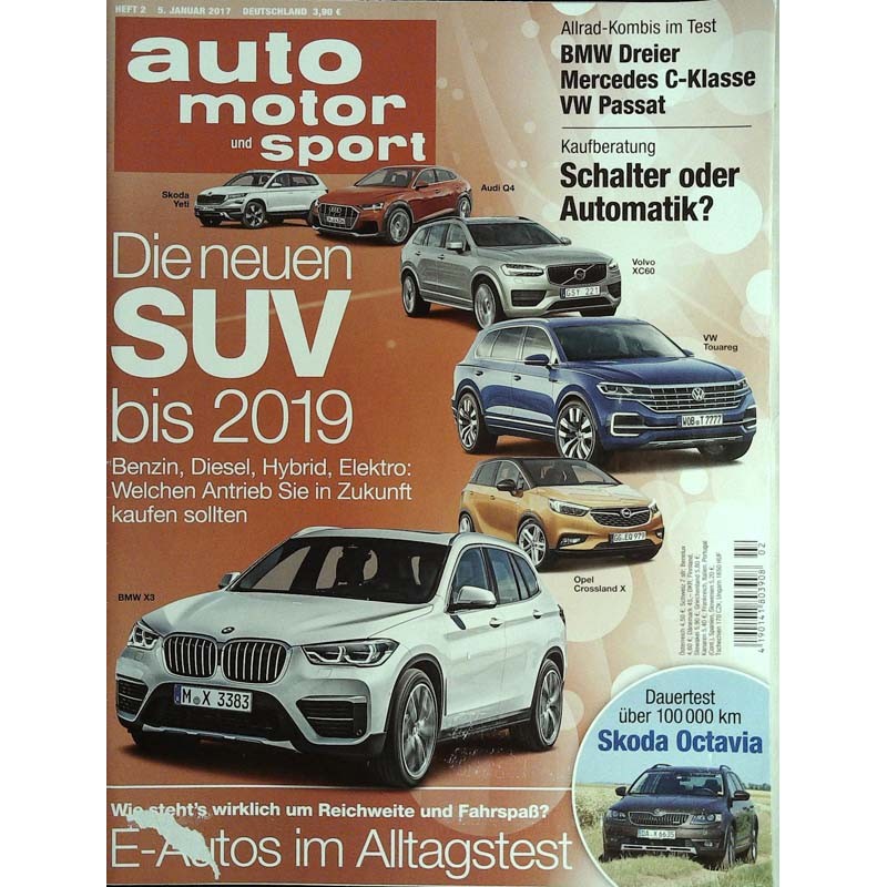 PLUS: Allrad-Kombis im Test: BMW Dreier, Mercedes C-Klasse, VW Passat - Kaufberatung: Schalter oder Automatik? - Wie stehts wirklich um Reichweite und Fahrspaß? E-Autos im Alltagstest - Dauertest über 100000 km: Skoda Octavia