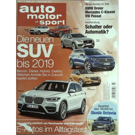 TESTS & FAHRBERICHTE Kia Soul EV, Nissan Leaf, VW e-Golf Wie zuverlässig und praxisgerecht sind die Elektro-Dauertestwagen im Alltag? VW Amarok Gehocab Der Pickup samt Kora-Wohnkabine eröffnet neue Freiheiten und Horizonte. Impression BMW 320d Touring xDrive, Mercedes C 250 d T 4Matic, VW Passat Variant 2.0 TDI 4Motion Mittelklasse-Kombis mit Dieselmotoren und Allradantrieb. Vergleichstest Audi S3, Mercedes-AMG CLA 45 Kompakte Power-Limousinen mit starken Turbomotoren. Vergleichstest BMW X3 xDrive 28i, Porsche Macan Mittelklasse-SUV mit aufgeladenen Zweiliter-Benzinern. Vergleichstest Ford Ka+ Preisgünstiger Kleinwagen mit vier Türen. Test Infiniti QX30 Kompaktwagen im Offroad-Look. Test Automatik oder Schaltgetriebe? BMW 318i, Mitsubishi Space Star, Smart Fortwo und VW Golf im Paarvergleich Lexus LC 500h Luxuscoupd mit Hybridantrieb. Impression Speedback GT Exklusiver Gran Turismo mit moderner Technik im 1960er-Jahre-Design. Impression Audi R8 Spyder V10 Erste Ausfahrt mit der Neuauflage des Stoffdach-Zweisitzers in Spanien. Impression Skoda Octavia Scout 2.0 TDI Wie bewährte sich der beliebte Kombi im Dauertest? Abschlussbericht Ford Mondeo Turnier, Kia Optima Sportswagon, Mazda 6 Kombi, Renault Talisman Grandtour Große Mittelklasse-Kombis mit Dieselmotoren. Vergleichstest
