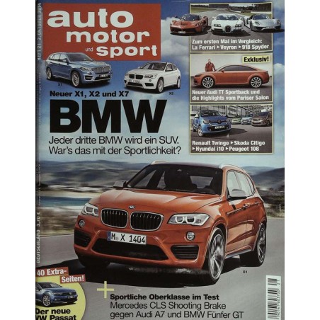 PLUS: Sportliche Oberklasse im Test: Mercedes CLS Shooting Brake gegen Audi A7 und BMW Fünfer GT - Zum ersten Mal im Vergleich: La Ferrari, Veyron, 918 Spyder - Neuer Audi TT Sportback und die Highlights vom Pariser Salon - Renault Twingo, Skoda Citigo, Hyundai i10, Peugeot 108 - 40 Extra Seiten: Der neue VW Passat
