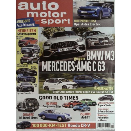 PLUS: 1000 Punkte Test: Opel Astra Electric - Ärgernis Auto Zulassung - Neuheiten - Familienautos: BMW 218i Active Tourer gegen VW Touran 1.5 TSI - Goog old Times: 70 Jahre DB-Diesel Limso, 60 Jahre Der älteste Elfer, 25 Jahre Audi TT - Gebruachtwagen: Toyota Yaris - Hintergrund: E-Auto Brände - Reportage: Autofähre entladen - 100000 km Test: Honda CR-V