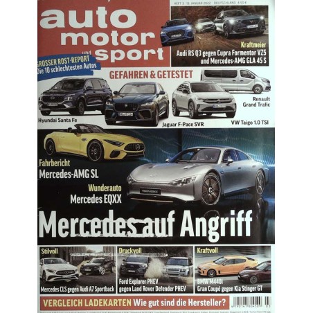 TESTS & FAHRBERICHTE Mercedes-AMG SL Neuauflage des sportlichen Luxuscabrios mit Stoffverdeck im Fahrbericht Audi RS Q3, Cupra Formentor VZ5, Mercedes-AMG GLA 45 5 Kompakte SUV mit rund 400 PS und Allradantrieb im Vergleichstest BMW M440i Gran Coupd, Kia Stinger GT Coup6hafte Viertürer mit Sechszylindermotoren im Vergleichstest Ford Explorer, Land Rover Defender 100 Große Offroader mit Plug-in-Hybrid-Antrieb im Vergleichstest Jaguar F-Pace SVR Edel-SUV mit 575 PS starkem V8-Kompressormotor im Test Hyundai Santa Fe Geräumiger Mittelklasse-SUV mit Plug-in-Hybrid-Antrieb im Test VW Taigo 1.0 TSI Kleines SUV-Coupd mit 110 PS im Test Renault Grand Trafic Im Test: frisch renovierter Kleinbus mit reichlich Platz auf 5,48 Metern Länge Audi A7 Sportback 55 TFSI, Mercedes CLS 450 Viertürige Coupes mit unterschiedlichen Antrieben im Vergleichstest VW Scirocco (1977) Kleines Sportcoupd auf Basis des Golf I im Test von heute Peugeot 308 PureTech 130, Seat Leon 1.5 TS1 Kompaktautos mit 130 PS starkem Benziner im Vergleichstest Mercedes EQC 400 Zwischenbilanz des E-SUV im Dauertest