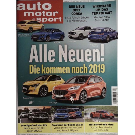 PLUS: Der neue Opel Corsa: Erste Fahreindrücke des Kleinwagens - Wirrwarr um das Tempolimit: Was soll diese Diskussion? - Prestige Duell der SUV: Neuer Mercedes GLE gegen BMW X5 - Was kann der Skoda Scala? Vergleichstest mit Kia Ceed und Renault Megane - Test Ferrari 488 Pista: Von der Rennstrecke auf die Straße