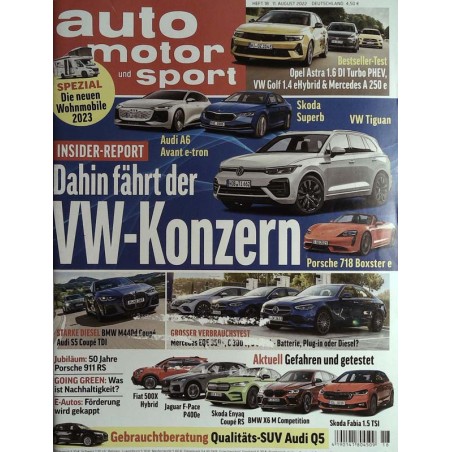 PLUS: Bestseller Test: Opel Astra 1.6 DU Turbo PHEV, VW Golf 1.4 eHybrid & Mercedes A 250 e - Spezial: Die neuen Wohnmobile 2023 - Gebrauchtberatung: Qualität SUV Audi Q5 - Starker Diesel: BMW M440d Coupe und Audi S5 Coupe TDI - Grosser Verbrauchstest: Mercedes EQ350, C300: Batterie, Plug oder Diesel? - Jubiläum: 50 Jahre Porsche 911 RS - Going Green: Was ist Nachhaltigkeit? - E-Autos: Förderung wird gekappt