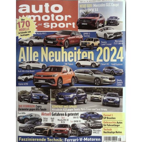 PLUS: Neue SUV: Mercedes GLC Coupe gegen BMW X4 - Die Feurigen: Cupra Formentor gegen Alfa Tonale - Kompakt mit Spass: Mitsubishi ASX gegen Toyota Yaris Cross und Seat Arona - Faszinierende Technik: Ferrari V Motoren - Formel 1: GP Brasilien - Gebrauchte Autos für Fahranfänger - Technik: Nachhaltige Reifen
