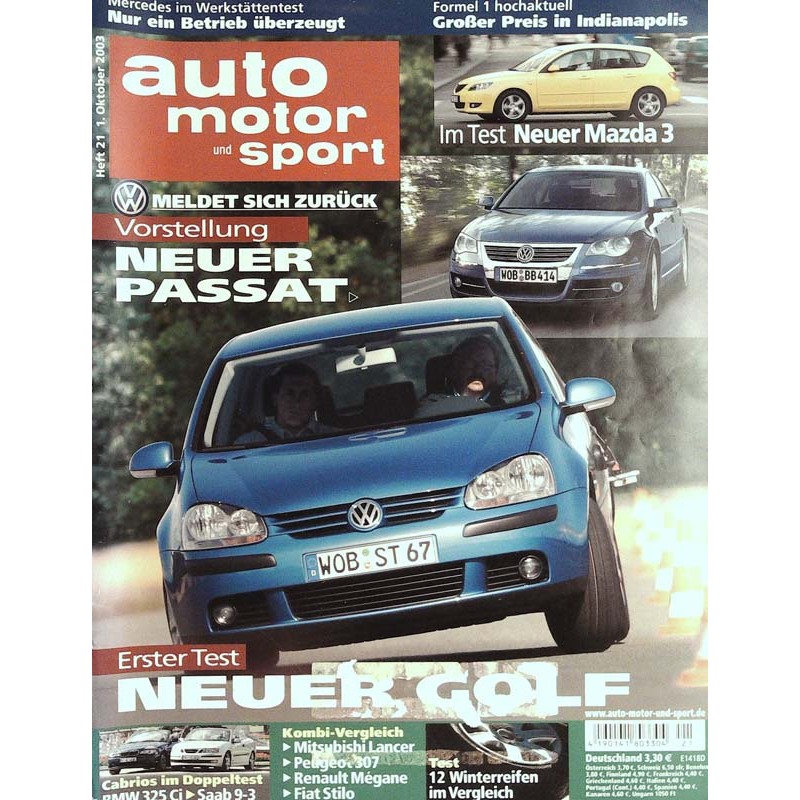 PLUS: Mercedes im Werkstättentest: Nur ein Betrieb überzeugt - Formel 1 hochaktuell: Großer Preis in Indianapolis - Im Test: Neuer Mazda 3 - Erster Test: Neuer Golf - Cabrios im Doppeltest: BMW 325 Ci, Saab 9-3 - Kombi Vergleich: Mitsubishi Lancer, Puegeot 307, Renault Megane, Fiat Stilo - Test: 12 Winterreifen im Vergleich