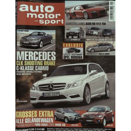 PLUS: Vorstellung: Audi R8 V12 TDI - Test: Citroen C5 - Doppeltest: BMW 525 d, Jaguar XF 2.7 D - Fahrbericht: Audi A4 Avant - Exklusiv: Letzte Testfahrt Opel Insignia - Grosses Extra alle Geländewagen: Fahrberichte Ford Kuga und BMW X6