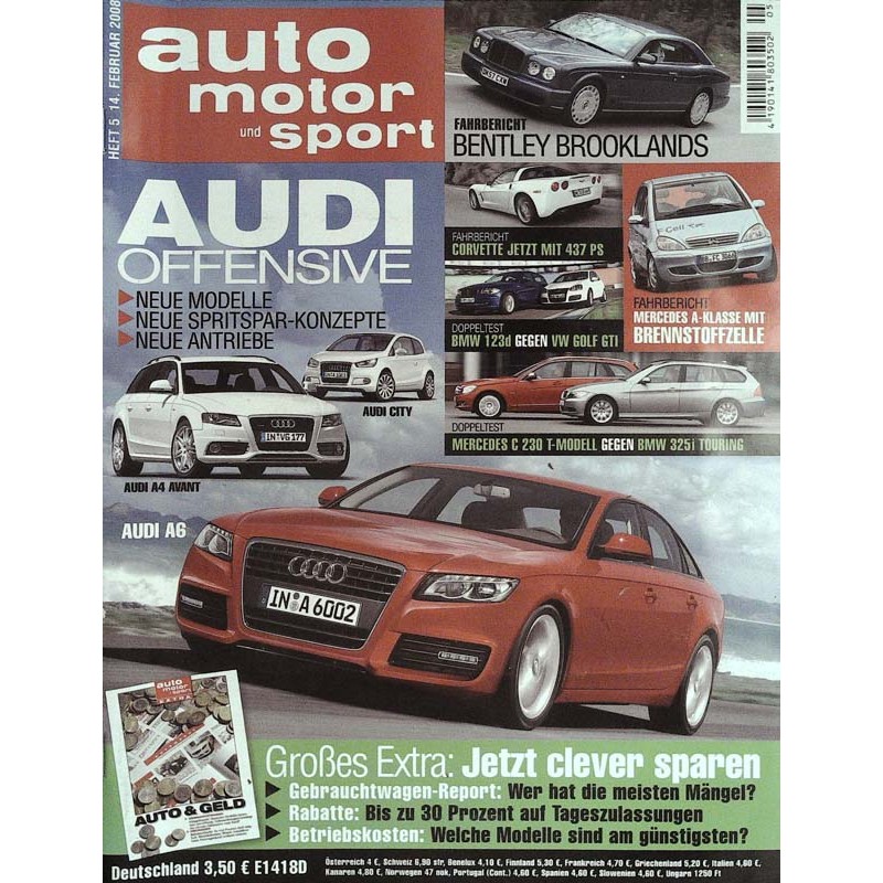 PLUS: Fahrbericht: Bentley Brooklands, Corvette jetzt mit 437 PS - Fahrbericht: BMW 123d gegen VW Golf GTI - Doppeltest: Mercedes C 230 T-Modell gegen BMW 325i Touring - Fahrbericht: Mercedes A-Klasse mit Brennstoffzelle - Großes Extra: Jetzt clever sparen, Gebrauchtwagen Report, wer hat die meisten Mängel? - Rabatte: Bis zu 30 Prozent auf Tageszulassungen - Betriebskosten: Welche Modelle sind am günstigsten