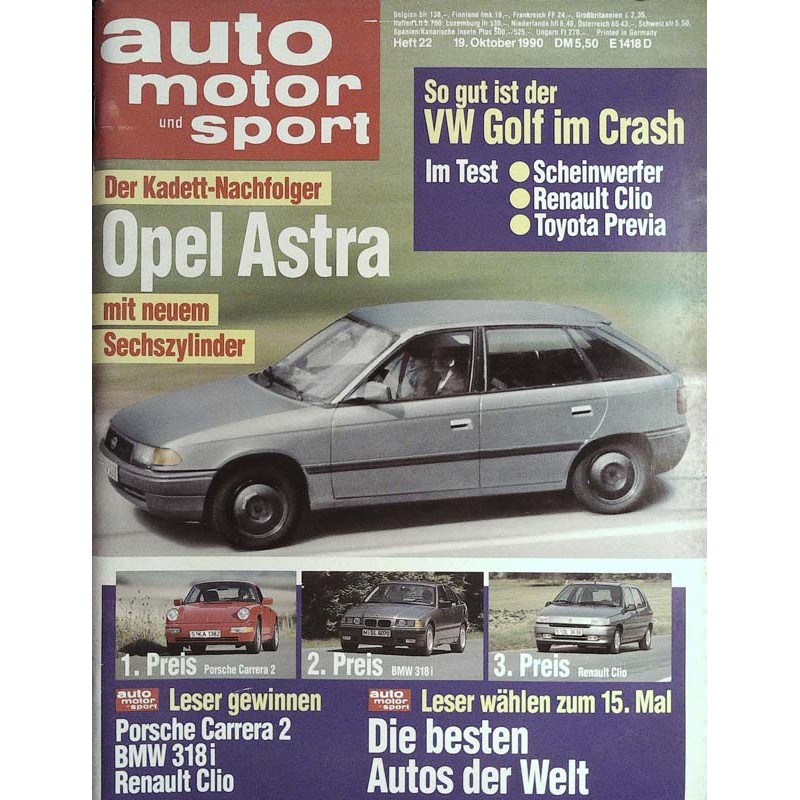 TEST & TECHNIK Test Renault Clio 1.4 RT Leichte Muse Test Scheinwerfer Licht und Schatten Fahrbericht Mercedes 500 E Saus und Braus Test Toyota Previa Van und aber Crash-Test VW Golf Das Handikap beim Golf Vorstellung Saturn Sedan und Coupe American Star Vergleichstest Ferrari 348 tb, Honda NSX. Porsche Carrera 2 Das Lied der Straße Tuning Alpina Z 1 Ein Spider im Herbst Test Opel Calibra 2.0i Slimline Aus dem Fuhrpark