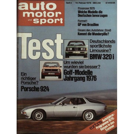 PLUS: Prognose 1976: Welche Modelle die Deutschen bevorzugen - Formel 1: GP von Brasilien - Gegen den Autofahrer Streß: Kommt die Wunderpille - Deutschlands sportlichste Limousine? BMW 320i - Um wieviel wurden sie besser? Golf Modelle Jahrgang 1976 - Extra: Autofahrer Programme 1976. Reisen in den Sommer