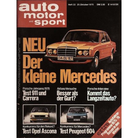 PLUS: Porsche Jahrgang 1976: Test 911 und Carrera - Airbag Versuche: Besser als der Gurt - Porsche Interview: Kommt das Langezitauto? - Konkurren für den rEkord? Test Opel Ascona - Konkurrenz für Mercedes? Test Peugeot 604 - Extra: Autofahrer Programm 1975/76 Reisen in den Winter