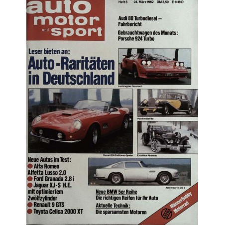 TEST & TECHNIK Silent Mover Test Jaguar XJ-S H.E. Verbessertes Jaguar-Coupe mit verbrauchsoptimiertem Zwölfzylindermotor Dritte Auflage Test Toyota Celica Liftback 2000 XT Japanisches Coupe mit neuer Karosserie Prüfstand Nachrichten Neues aus der Technik Gert Hack Notizen Safety fast? Kraftwagen Fahrbericht Audi 80 CL Turbodiesel Neue Modellvariante mit temperamentvollem Selbstzünder-Aggregat Musterkinder Technik Die Geheimnisse der sparsamsten Motoren der Autohersteller Der Gebrauchtwagen des Monats Ratgeber Porsche 924 Turbo unter 30 000 Mark Teurer Spaß Ratgeber Was Ersatzteile kosten Leser über ihre Autos Erfahrungen VW Golf - Lada Niva - Saab 96 - Toyota Cressida - Lancia Delta - Citroen 2 CV Rechts-Rat Ratgeber So urteilen deutsche Gerichte Fast der alte Test Ford Granada 2.8i Neues Ford-Spitzenmodell Eilbote Neues Modell Ford Escort RS 16001: sportliche Version mit Einspritzmotor und 115 PS Der Herrenwagen Oldtimer BMW 327/28: Schnelles und elegantes Cabriolet der Vorkriegsjahre Reifen-Rat Ratgeber BMW Fünfer-Modelle: Welche Reifen sind empfehlenswert? Dickhäuter Fahrbericht auto motor und sport fuhr einen gepanzerten Mercedes 380 SEL Viva Alfa Test Alfa Romeo Alfetta 2.0 Lusso Verbesserte Version der italienischen Mittelklasse-Limousine Zugnummer Test Renault 9 GTS Leistungsstärkste Version der neuen Stufenheck-Limousine aus Frankreich Papierkrieg Ratgeber Was beim Import eines Gebrauchtwagens aus dem europäischen Ausland zu beachten ist Vor 20 Jahren Rückblick auto motor und Sport in Heft 6 und 7/1962 Männerhobby Motorrad Wachstum ohne Grenzen Japans Motorrad-Industrie strebt nach immer mehr technischer Vielfalt Alles neu Honda Motorrad-Programm 1982 mit vielen revolutionären Neukonstruktionen Sentimental Journey Fahrbericht Enfield India Unterwegs mit einem neuen Zweirad-Veteranen Nouvelle Cuisine MF 650 R: Nach langer Pause gibt es wieder ein hubraumstarkes Motorrad aus Frankreich Vespenflug Bemerkungen über die Vespa Leute machen Kleider Motorrad-Kombis von Giudici und Gericke