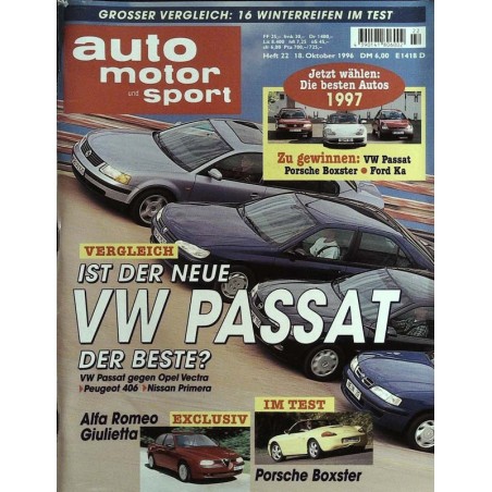 PLUS: Vergleich: Ist der neue VW Passat der beste? VW Passat gegen Opel Vectra, Peugeot 406 und Nissan Primera - In Test: Porsche Boxster - Grosser Vergleich: 16 Winterreifen im Test - Jetzt wählen: Die besten Autos 1997