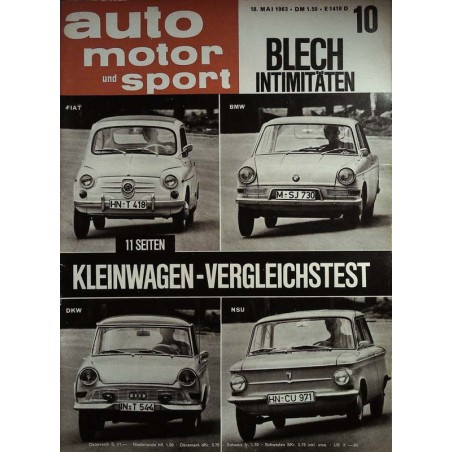 INHALT Vergleichstest BMW IS Luxus, DKW Junior De Luxe, NSU Prinz 4, NSU-Fiat Jagst 770 Wir fuhren: Rallye-DKW F 12 Das ganz große Spielzeug Preise in der Frühlingssonne Zu dünnes Blech für unsere Autos? Wir fuhren: Hillman Imp Jesse Alexander fuhr den Studebaker Avanti Ein bewaffnetes Lächeln Für alle Fülle: Waffen für den Autofahrer Beiderseits der Maloja-Kehren Alfa Romeo Gut. TI Super Gedanken zu einer neuen Rennformel Neuer Formel 1-Rennwagen von Ferrari Bandscheibenschoner Dem Auto Hörner aufgesetzt