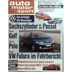 PLUS: Die Autos des Jahres: Mercedes SL, Citroen XM, Trabant 601, Mazda MX-5 - Porsche: Doppeltests Carrera 2 gegen Carrera 4 - Toyota: Neues Sportcoupe MR 2 - Peugeot: Neuer 605 im Test
