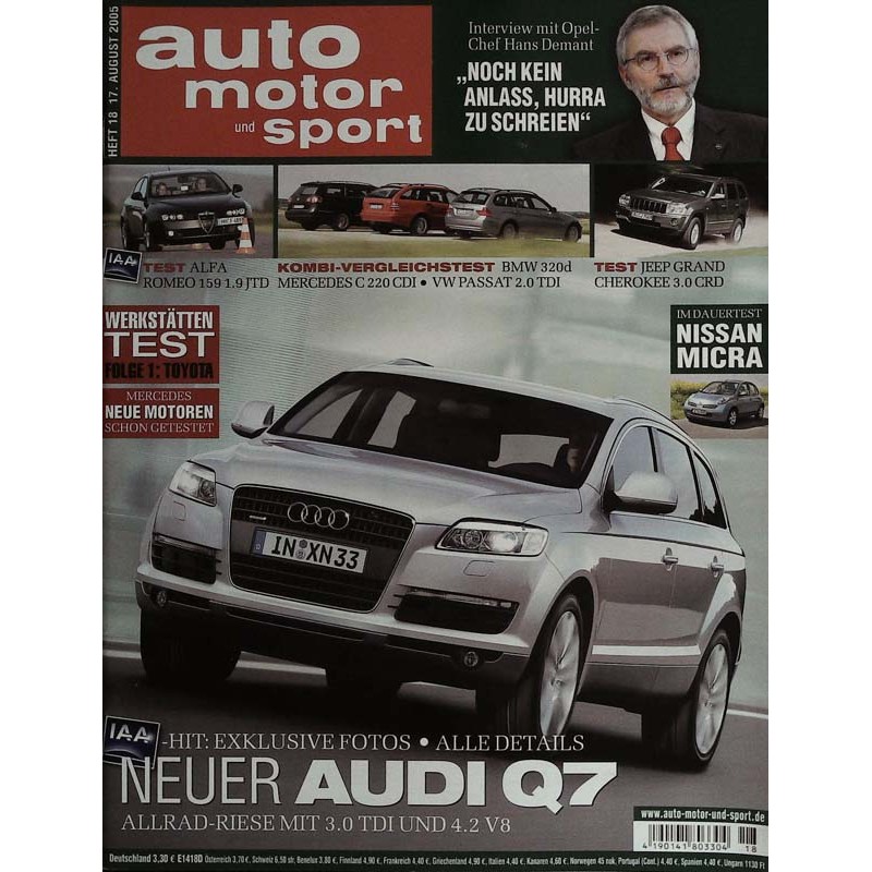 PLUS: Im Dauertest: Nissan Micra - Werkstätten test Folge 1: Toyota - Mercedes neue Motoren schon getestet - Test: Alfa Romeo 159 1.9 JTD - Kombi Vergleichstest: BMW 320d, Mercedes C220 CDI, VW Passat 2.0 TDI - Test: Jeep Grand Cherokee 3.0 CRD - Interview mit Opel Chef Hans Demant: Noch kein Anlass, Hurra zu schreien