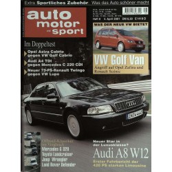 Test & Fahrbericht Audi A8 L 6.0 Quattro Mit dem 420-PS-Zwölfzylinder baut Audi die stärkste Serienlimousine. Fahrbericht Citroën C5 2.2 HDi Exclusive Der C5 ersetzt im Citroën-Modellprogramm künftig den Xantia. Test BMW 3201, Ford Mondeo 2.5 V6, Volvo S60 2.4, VW Passat V5 Luxuriöse Mittelklasse mit 170 PS starken Fünf- und Sechszylindermotoren.Vergleichstest Renault Twingo 1.2 16 V gegen VW Lupo 1.4 Die 75-PS-Kleinwagen im Doppeltest Audi A4 1.9 TDl gegen Mercedes C 220 CDI Diesel der Mittelklasse im Doppeltest Porsche 911 Turbo Tiptronic, Honda Stream, Mitsubishi Space Star 1.9 DI-D, Mazda Xedos 9 Schon gefahren und getestet Opel Astra 1.8 16 V Cabrio gegen VW Golf 2.0 Cabrio Der VW-Klassiker gegen den neuen Rivalen. Doppeltest Jeep Wrangler 4.0, Land Rover Defender 90 Td 5, Mercedes G 320, Toyota Landeruiser HZJ 71 Offroad-Klassiker im Vergleich