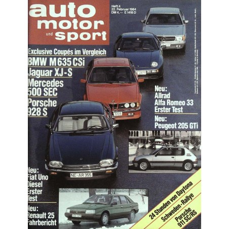 Titelbild: auto motor & sport Heft 4 / 22 Februar 1984 - Coupes im Vergleich: BMW M635 CSi, Jaguar XJ-S, Mercedes 500 SEC, Porsche 928 S
