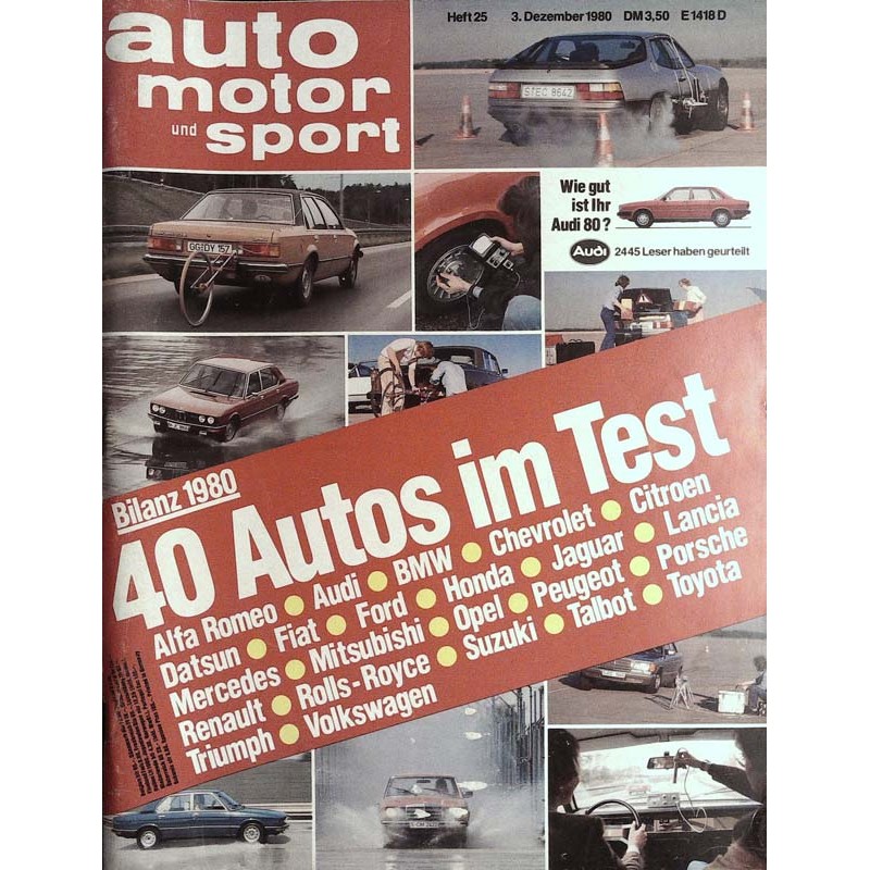 RATGEBER Die Schwächen der Audi 80-Reihe 2445 Leser haben geurteilt Kalender 1981 Formel 1 - Moto Cross - Oldtimer Wegweiser Informationen für die Praxis Tiefgang Börsenbericht November 1980: Die Autoindustrie mußte starke Kursverluste hinnehmen Wasser marsch Wie ein Bastler aus einem Citroen ID 19 einen Schwimmwagen machte Service-Problem Was Autofahrer in Werkstätten auf der Insel Mauritius erleben können Männersachen Die Redaktion suchte für Sie aus: von der Rikscha bis zum Sprit-Limiter