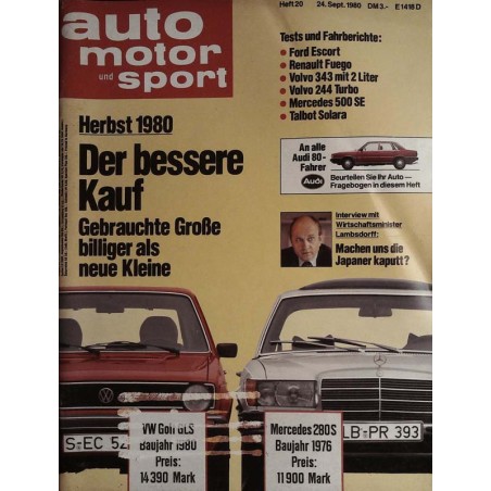 Auto Motor und Sport Heft 20 vom 24 September 1980