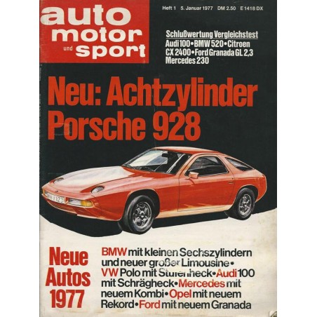 PLUS: Schlußwertung Vergleichstest: Audi100 - BMW520 - Citroen CX 2400 - Ford Granada GL 2,3 - Mercedes 230 - Neue Autos 1977 - BMW mit kleinen Sechszylindern und neuer großer Limousine - VW Polo mit Stufenheck - Audi 100 mit Schrägheck - Mercedes mit neuem Kombi - Opel mit neuem Rekord - Ford mit neuem Granada