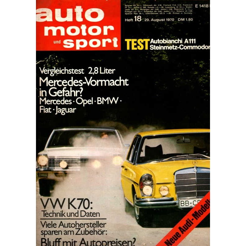 PLUS: VW K70: Technik und Daten. Vile Autohersteller sparen am Zubehör. Bluff mit Autopreisen? - Neue Audi Modelle - Test: Autobianchi A111 Steinmetz Commodore