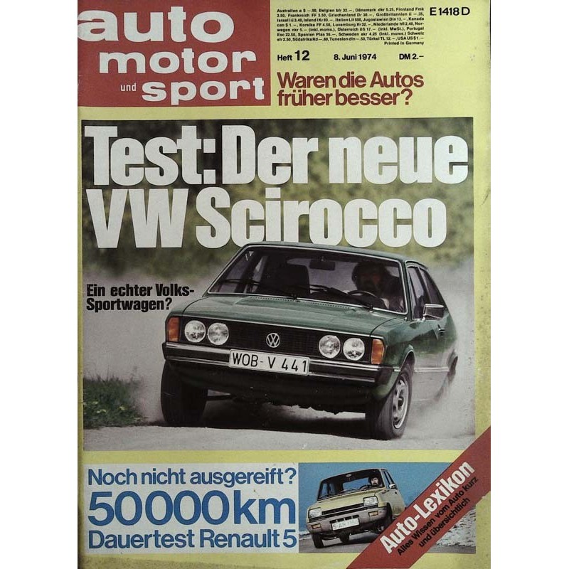 auto motor & sport Heft 12 / 8 Juni 1974 - Der neue VW Scirocco