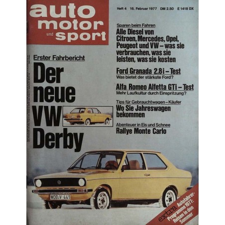 PLUS: Sparen beim Fahren: Alle Diesel von Citroen, Mercedes, Opel, Peugeot und VW, was sie verbrauchen, was sie leisten, was sie kosten - Ford Granada 2.8i Test: Was bietet der stärkste Ford? - Alfa Romeo Alfetta GTi Test: Mehr Laufkultur durch Einspritzung? - Tips für Gebrauchtwagen Käufer: Wo Sie Jahreswagen bekommen - Abenteuer in Eis und Schnee: Rallye Monte Carlo - Extra: Autofahrer Programme 1977: Reisen in den Sommer