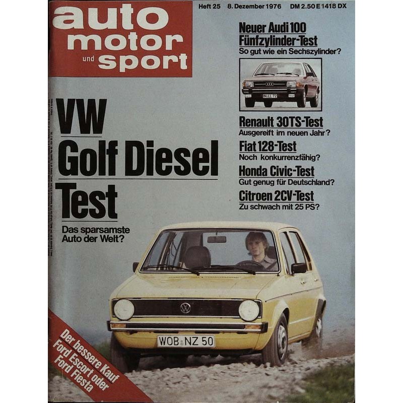 Test und Technik Rekord Diesel Test VW Golf-Diesel: VW baut den sparsamsten und kleinsten Diesel-Personenwagen der Welt Ente ohne Schrecken Kurztest Citroen 2 CV 6: neue Version mit schwächerem Motor Kulturpolitik Kurztest Renault 30 TS: Verbesserungen sollen Renaults Spitzenmodell attraktiver machen Gut gemischt Ist halb verbrannt Die Zukunfts-Chancen des Vergasers Dauertest-Report BMW 320, Simca 1308 S Neues Zubehör Vom Dachskihaltor bis zur Motorantenne Die fünfte Dimension Test 100 GL 5E: Ist der neue Fünfzylinder von Audi so gut wie ein Sechszylinder? Vor 20 Jahren auto motor und sport In Heft 25 und 26/1956 Nachrichten aus der Technik Arthur Westrups Fragestunde Heute: Wie funktioniert ein Viertaktmotor? Nebenrolle Kurztest Honda Clvlc: japanischer Mini mit zwei Karosserie- und zwei Motor-Varianten Der bessere Kauf Ford Escort und Fiesta Welcher bietet mehr? Kontaktpflege Kurztest Fiat 128 CL Detailverbesserungen sollen das Interesse am 128 beleben