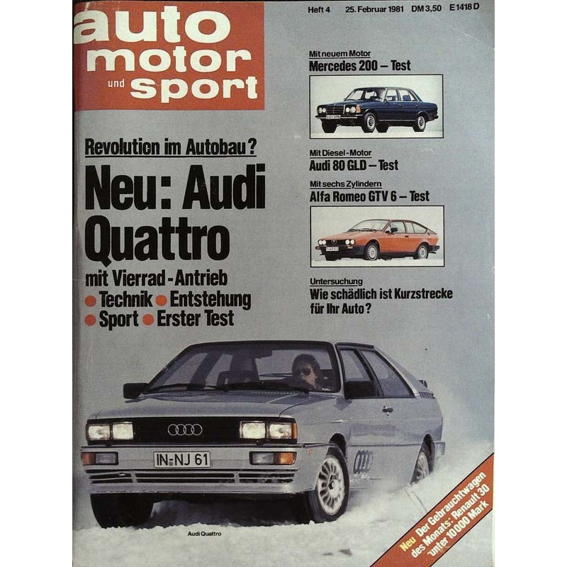 TITEL Vierer mit Steuermann Was der vierradgetriebene Audi Quattro im Sport ausrichten soll Auf geht's Test Audi Quattro Allradgetrieben. Sportcoupe mit 200 PS-Turbomotor Welche Schale, harter Kern Die Technik des Audi Quattro für Straße und Sport: außen Plastik und Dünnblech, innen modernster Autobau