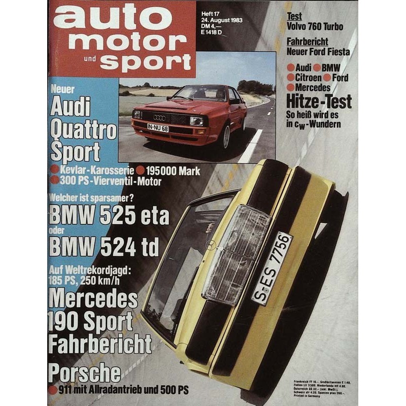 PLUS: Auf Weltrekordjagd: 185 PS, 250 km/h Mercedes 190 Sport - Welcher ist sparsamer?: BMW 525 eta oder BMW 524 td - Porsche: 911 mit Allradantrieb und 500 PS - Test: Volvo 760 Turbo - Fahrbericht: Neuer Ford Fiesta - Hitze Test: So heiß wird es in cw- Wundern