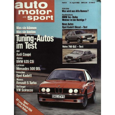 TEST & TECHNIK Aus dem Fuhrpark Testerfahrungen Lada Niva California, Rover 2300 S Wiederbelebung Oldtimer über die Restaurierung des Buckel-Taunus Sichere Sache Dauertest 80 000 Kilometer mit dem Peugeot 505 STI. Prüfstand Nachrichten Das Neueste aus der Technik Donars Beil Test Volvo 760 GLE Das neue Flaggschiff von Volvo mit Sechszylindermotor Hoch-Alpine Test Renault 5 Alpine Turbo Leistungsstarke R 5-Variante mit Turbolader und 108 PS Landgraf Test Range Rover Neue Version mit vier Türen und sparsamerem Motor An alle Alfasud-Fahrer Leser-Aktion Beurteilen Sie Ihr Auto Setzen, fünf Test Ford Escort 1.6 L Jetzt wahlweise auch mit Fünfganggetriebe Die italienische Reise Oldtimer Über 400 Lancia-Veteranen reisten gemeinsam durch Oberitalien Bitte recht freundlich Börsenbericht April 1982 Trotz höherer Autopreise nicht nur Pessimismus Der Ölprinz Test Opel Kadett 1.6 D Neue Version mit 54 PS starkem Dieselmotor und Fünfganggetriebe Bayern Drei Ratgeber Welches BMW Dreierreihe-Modell soll man kaufen? Born to be wild Test Honda VF 750 C Superstarker Chopper aus Japan Motorrad-News Nachrichten Neues vom Zweiradmarkt „400 000 Kilometer und doch kein Diesel" Erfahrungen auto motor und sport-Leser Kurt Heinz Kobiella über seinen Aston Martin DBS V8