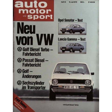 Test und Technik Geglücktes-Experiment Fahrbericht VW Golf Diesel Turbo: Das Volkswagenwerk hat einen Golf Diesel mit Turbolader entwickelt Zeitzeichen Fahrberidit VW Passat Diesel: das Wolfsburger Mittelklasse-Modell jetzt auch mit Dieselmotor Feinarbeit Was an den 1979erVW-Modellen verbessert wird Neue Größe Test Opel Senator 3.0 E: kompakte neue Opel-Limousine der Oberklasse Frech-Dax Test Honda CY 50: neues Mini-Mokick mit Viertakt-Motor aus Japan Fuhrmanns Chef Vorsitzender des Porsche-Aufsichtsrates: Ferry Porsche Boxeraufstand Test Lancia Gamma: Spitzenmodell des Fiat-Konzerns mit Vierzylinder-Boxermotor Prüfstand Nachrichten aus der Technik Gert Hack Notizen