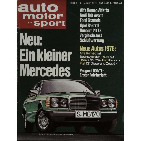 Test und Technik Projekt W 201 Daimler-Benz-Plan für die achtziger Jahre: Mercedes 170 und 190 Neue Autos 1978 Aus Europa, Japan und Amerika kommen zahlreiche neue Modelle auf den Markt Neue Mitte Vergleichstest: Alfa Romeo Alfetta 2000, Audi 100 Avant LS, Ford Granada L 2.3, Opel Rekord L 2.0 E, Renault 20 TS (zweiter Teil) Nachrichten aus der Technik Geil Hacks Notizen Betrifft: Reifentest Aufwertung Fahrbericht Peugeot 604 V6 TI: Peugeot 604 jetzt auch mit Einspritzmotor