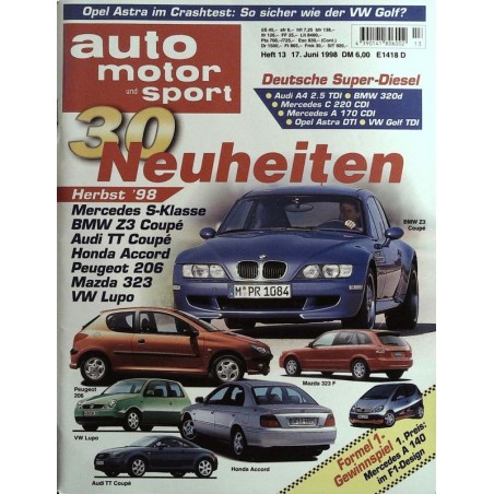 Titelbild: 30 Neuheiten: Mercedes S-Klasse, BMW Z3 Coupe, Audi TT Coupe, Honda Accord, Peugeot 206, Mazda 323, VW Lupo uvm.